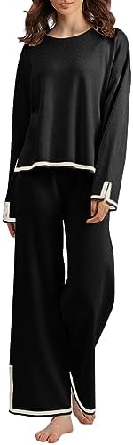 Baonmy 2 Piece Outfits Women Sales Sweater Sets Lounge Sets Silk Feel Oversized Tracksuit Casual Short Sleeve Knit Pullover Tops Wide Leg Pants Homewear Elegant