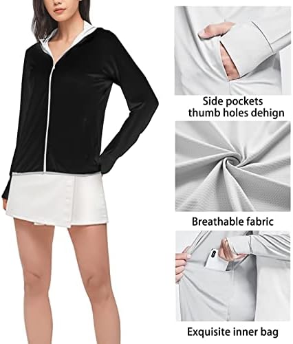 COEQINE Sun Protection Hoodie Jacket Full Zip UPF 50+ Sun Shirt for Women,Summer Outdoor Long Sleeve Athletic Hooded Shirt