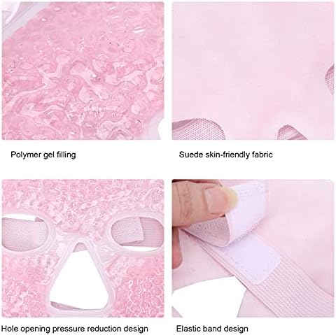 Cooling Face Mask, Cooling Full Face Gel Masks Reusable Gel Beads Face Mask Cooling Soothing Relaxation Facial Gel Mask (Pink)