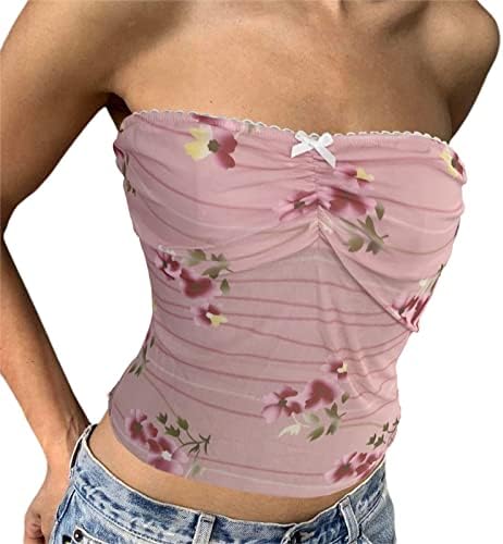 Geagodelia Women’s Sexy Lace Tube Top Ladies Strapless Vest Crop Top Y2K Fashion Boob Bandeau Top Summer Aesthetic Clothes Outfit Streetwear Clubwear
