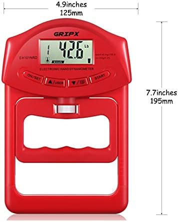 GRIPX Digital Hand Dynamometer Grip Strength Measurement Meter Auto Capturing Electronic Hand Grip Power 198Lbs / 90Kgs