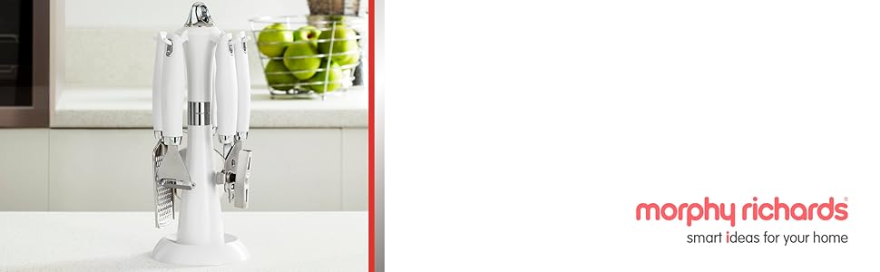 Equip your kitchen with all the essential tools with this stylish white 4 piece gadget set from the Morphy Richards Dune collection.