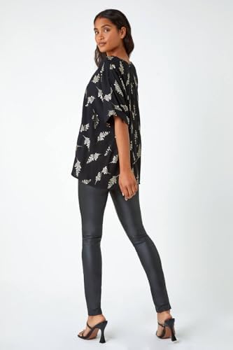 Take your look from day to night with ease in this statement metallic print top. Cut from a light woven fabric in an oversized t-shirt shape, this piece is crafted in a fiercely feminine batwing shape with a classic round neck and short sleeves. Complete with unique button detailing at the back, this dazzling piece is sure to turn heads throughout Autumn. Pair with faux leather leggings for an easy evening outfit or dress it down with jeans and boots for those off-duty days. Available In: Black