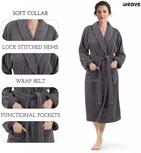 Weave Essentials Basics Terry Toweling Bathrobe with Classic Shawl Collar Style, 100% Cotton Dressing Gown suitable for Beauty Parlor, Hotel & Spa, Lightweight