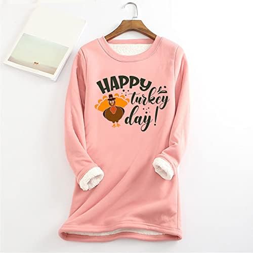 Women Casual Thanksgiving Print Shirt Thick Fleece Sweatshirt Winter Round Neck Warm Soft Fashion Underwear Top Hoodie Women Kids Black Hoodie Teachers Gifts for Women Discounted Items for Sale