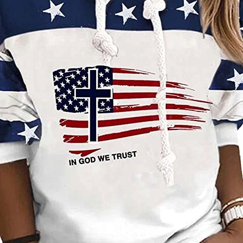 Womens American Flag Star Heart Print Hoodie with Drawstring White Sweatshirt USA Patriotic Clothing Pullover Top