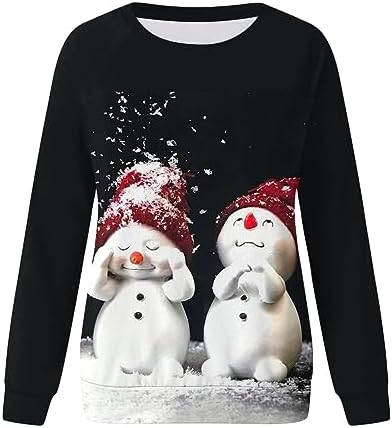 Womens Christmas Santa Sweatshirt Crewneck Loose Fit Pullover Tops Snowman Printed Jumper Clearance Ladies Casual Long Sleeve Workout Shirts Novelty Christmas Jumpers Plus Size Ugly Xmas Clothing